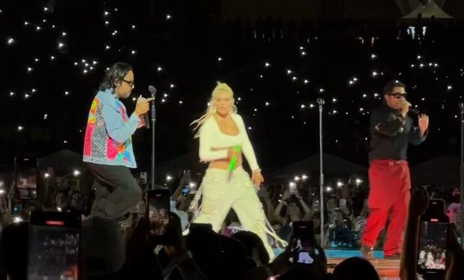 El estadio capitalino se vino abajo cuando ‘La Bichota’ anunció la participación de los exintegrantes de Salserín, quienes precisamente entonaron su icónico ‘De sol a sol’; la euforia colectiva calentó aún más el ambiente, pero, aunque los fanáticos les pidieron otra canción en conjunto, Karol resolvió el problema entonando a capela el coro y los despidió.